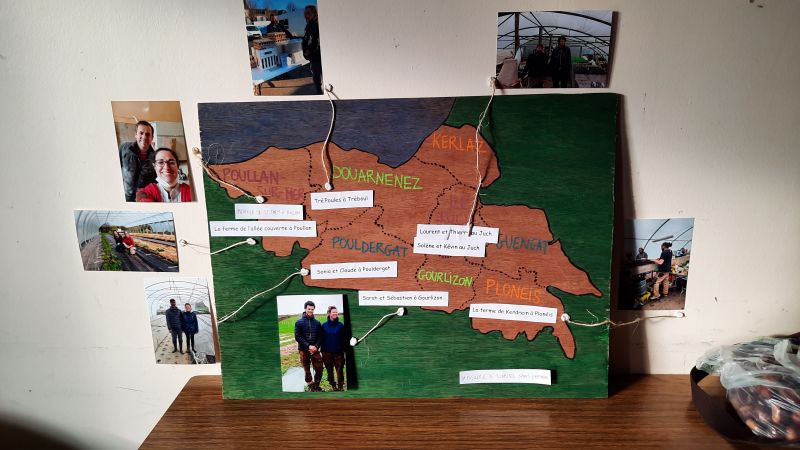Nous avons présenté des affiches sur nos actions, agrémentées de photos, ainsi qu’une carte de la région situant les producteurs locaux avec qui nous travaillons pour le groupement d’achat, le marché à l’assiette et toutes les autres actions que nous faisons au fil de l’année (cuisine avec les enfants et parents, fêtes diverses et variées…). La carte va être accroché dans le groupement d’achat pour que les habitants puissent situer les fermes, en récupérant leurs achats.